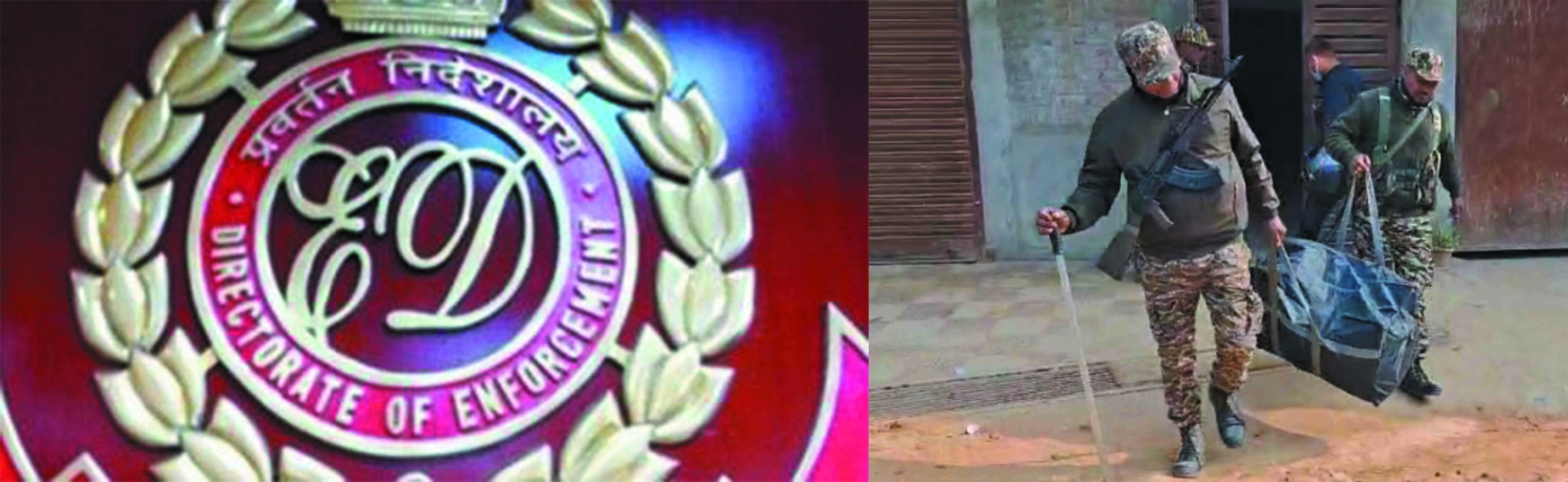 সেন্ট্রাল রিজার্ভ পুলিশ ফোর্স (সিআরপিএফ) জওয়ান সহ নিরাপত্তা কর্মীদের একটি দল ইডি দলকে সহায়তা করছে।